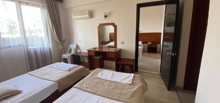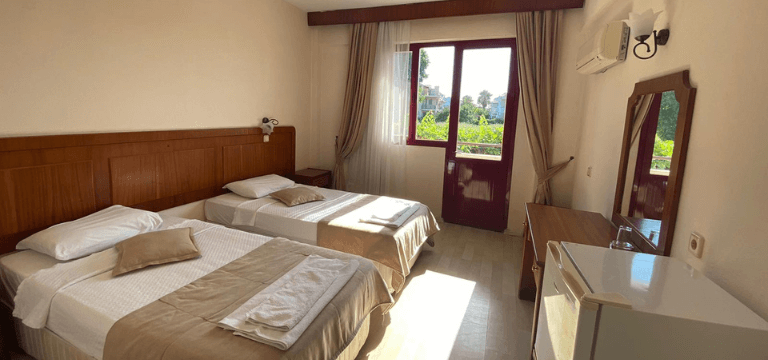 Our hotel is located in Çalış Beach Fethiye It is 50 km from Dalaman airport. Our hotel is 1 km away from Çalış Beach. Cafes, Restaurants, Bars and Social Activities are within a 3-minute walk.